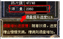 饮酒,可获得酒量的增长:(按F10,打开人物状态栏,可查看当前酒量)