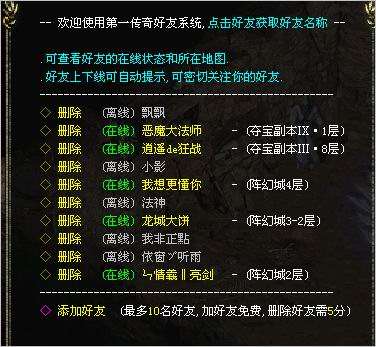 10. 特色独家好友系统,你的好友上下线会有提示哦!